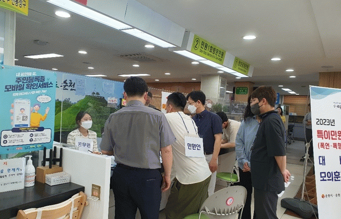 한편, 순천시는 안전한 민원실 근무환경 조성을 위해 시청 민원실, 해룡면 상삼출장소.왕조1동 행정복지센터에 안전요원을 배치했으며, 본청 및 26개 읍면동 행정복지센터 민원창구에 보호조치 음성안내 및 녹음전화 운영, 민원창구 안전가림막 설치, CCTV 및 경찰연계 안심 비상벨을 운영하고 있다.