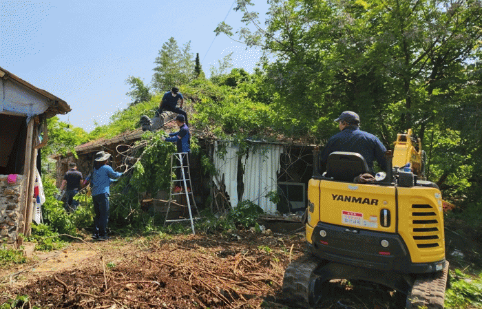 집 주변과 지붕을 덮는 넝쿨과 잡목 제거하고 집 안팎으로 쌓여있는 생활쓰레기와 폐가전을 처리하기 위해 기계톱과 미니 포크레인이 동원됐고 자원봉사자의 주거공간 청소와 의류·이불 세탁 지원, 군청·고흥읍사무소 직원들의 분리수거 작업 등에 50여 명이 동참해 5톤 트럭 3대 분량의 폐기물을 처리했다.