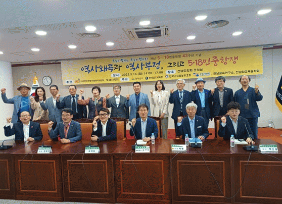 한편, 이날 토론회에서는 최영태(전남대 명예교수), 유경남(5·18기념재단), 김여선(도교육청 교육자치과), 최치수(5·18민중항쟁고등학생동지회), 박오성(목상고 교사)등이 참여하여 역사왜곡과 역사부정에 대한 심도있는 비판과 개선점을 제시했고 앞으로 미래사회를 위해 나아갈 역사교육과 방향을 모색했다.