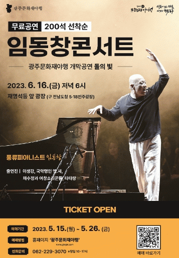 개막공연 ‘돌의 빛’은 풍류 피아니스트로 알려진 임동창 씨를 초청해 6월 16일 오후 6~8시 옛 전남도청 앞에서 진행된다. 무형문화재(악기장 이춘봉·화류소목장 조기종)와 유형문화재(재명석등·광주읍성유허 등)가 품은 이야기와 임동창의 음악 세계가 어우러지는 풍류 한마당으로 펼쳐질 예정이다.