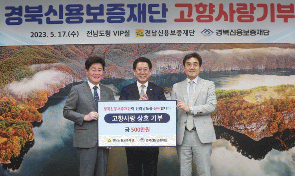 이날 고향사랑 기부금 행사에는 김영록 전남도지사, 김세환 경북신용보증재단 이사장, 정양수 전남신용보증재단 이사장 등 관계자가 참석했다.