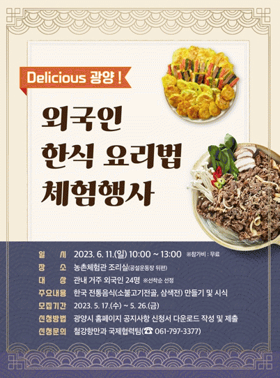 신청 자격은 지역 내 거주 외국인이며, 5월 17일부터 26일까지 10일간 선착순으로 모집한다.