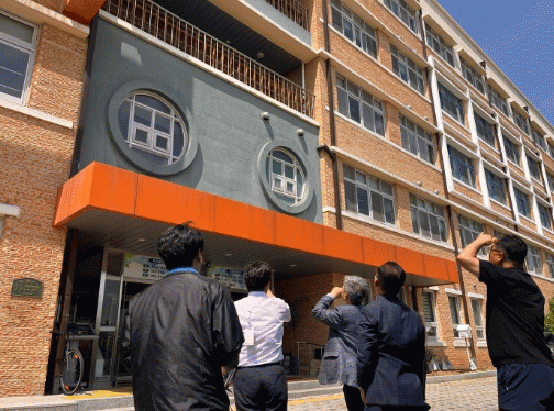 19일 시교육청에 따르면 이번 안전점검은 드라이비트 공법(외단열공법)으로 마감된 건물에 대해 위험 요소를 사전에 발견해 조치할 수 있도록 하는 예방 활동 차원으로 진행했다. 점검반은 구조·소방 분야 기술사 등 민간전문가와 교육청 기술직 공무원이 합동으로 편성됐다. 지난 17일에는 장우삼 부교육감이 문정여고를 점검반과 동행해 점검했다.