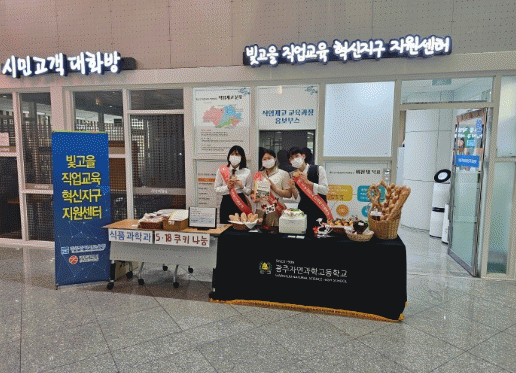 지난 18일에 첫 진행된 홍보부스 프로그램에서는 식품과학과 실습 작품 전시와 함께 5·18민주화운동의 정신을 기리는 5·18쿠키 나눔을 진행해 눈길을 끌었다. 5·18쿠키 나눔 행사는 광주자연과학고, 제과, 제빵 3가지 주제 중 하나를 선택해 사진과 명칭을 제한 시간 안에 짝지어 성공하면 쿠키를 받을 수 있게 진행했다.