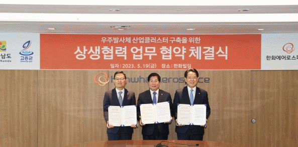 이날 협약식에는 공영민 고흥군수, 김영록 전남도지사, 손재일 한화에어로스페이스 대표가 참석해 우주발사체 특화지구로 지정된 전남 고흥군에 발사체 인프라 조성 등 대한민국 우주산업 경쟁력 강화를 위한 유기적인 협력체계를 구축하기로 뜻을 모았다.