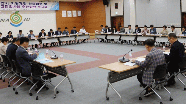 19일 나주시에 따르면 최근 시청사 대회의실에서 윤병태 시장 주재로 전체 부서장이 참석한 가운데 ‘2023년 지방재정 신속집행 추진상황’ 및 ‘2024년도 국고건의 신규사업 추진상황’ 보고회를 함께 개최했다.