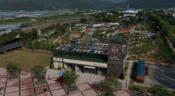 플랫폼은 기차철교 형상을 모티브로 삼았다. 1층은 매표소, 대합실 2층은 시계탑, 전망대를 설치해 기차마을을 찾는 관광객들이 항시 이용하고 조망 가능한 휴게 공간으로 조성했다.