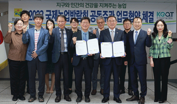협약식에는 박홍재 전남국제농업박람회 대표이사와 구본근 한국농업기술진흥원 부원장 등 10여 명이 참석해 2023 국제농업박람회를 비즈니스 산업박람회로의 성공 개최를 다짐했다.