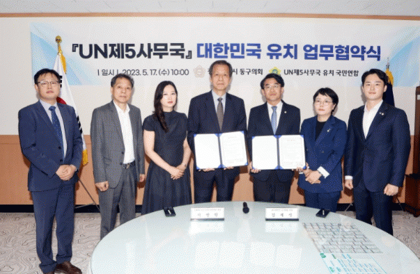 이런 가운데 UN제5사무국유치국민연합은 유엔 제5본부의 대한민국 유치를 위해 지자체, 광역·기초 의회를 비롯해 여러 민·관 단체들과 협약을 확대해 나가고 있으며 이를 통해 상호 협력과 대 국민 홍보에 앞장서고 있다.