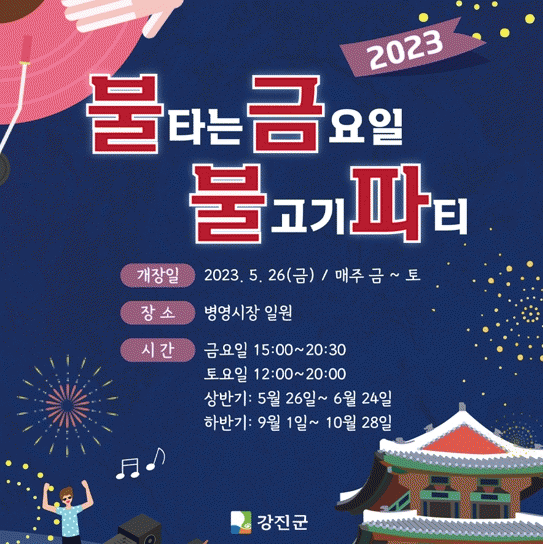 강진 불금불파 행사는 7월과 8월은 폭염으로 휴장하며, 10월 말까지 매주 금요일과 토요일 계속된다.