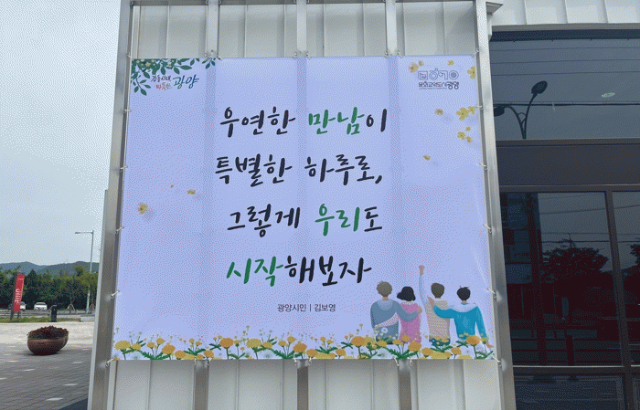 최종 선정작은 광양시민 김보영 씨의 글귀인 ‘우연한 만남이 특별한 하루로, 그렇게 우리도 시작해보자’가 선정됐으며, 이 작품은 오는 6월 말까지 전시될 예정이다.