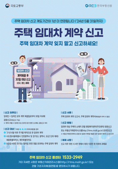 2021년 6월 1일부터 시행한 ‘주택임대차 신고제’는 제도 도입에 따른 국민 부담 완화와 행정 여건을 고려해 2년간인 31일까지 계도기간을 운영했다.