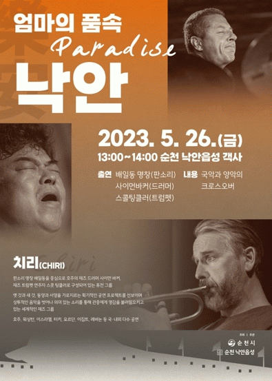 순천시가 주최하는 이번 공연은 ‘엄마의 품속, 파라다이스(PARADISE), 낙안!’을 주제로 오는 26일 오후 1시부터 2시까지 진행된다.
