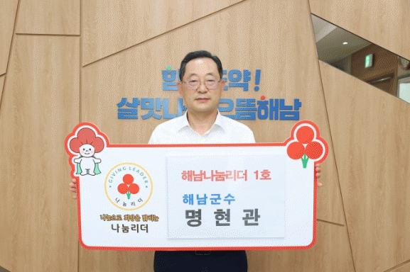 명현관 해남군는“어려운 이웃과 함께하는 따뜻한 나눔 문화를 만들어 가고자 해남나눔 리더 가입을 결정했다”며“나눔리더로 나눔을 실천하고 지역사회 내 나눔문화가 더 확산되길 바란다”고 말했다.
