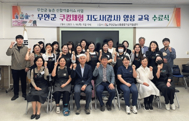 한편, 이번 요리 체험 지도사(강사) 양성 교육은 무안군 농촌 신활력플러스 사업(이하 신플 사업)의 하나로 무안 고구마 활용 체험프로그램을 진행할 수 있는 지도사(강사)를 양성하는 과정으로 무안군은 이번 교육과정에 이어 8월 중 추가(후속) 교육 또한 계획하고 있다.
