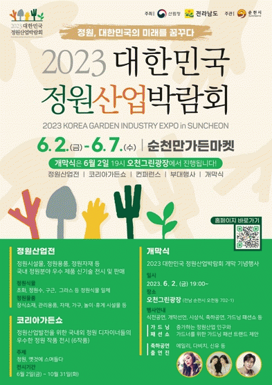 특히, 정원산업박람회장인 순천만가든마켓 인근에 지난 4월 1일 개장 이후 연일 흥행가도를 달리고 있는 2023순천만국제정원박람회장이 위치하고 있어 두 박람회를 동시에 관람할 수 있다.