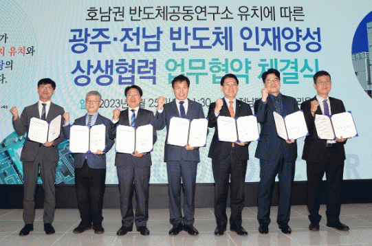 주요 내용은 ▲호남권역 반도체공동연구소 구축 및 활용 ▲광주·전남 반도체 특화단지 협력 ▲지역 반도체산업에 필요한 맞춤형 전문인력 양성 ▲초·중·고등 교육프로그램 운영 등 반도체 인재양성을 위한 긴밀한 상호 협력이다.