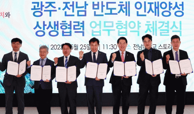협약 주요 내용은 ▲호남권역 반도체공동연구소 구축 및 활용 ▲광주·전남 반도체 특화단지 협력 ▲지역 반도체산업에 필요한 맞춤형 전문 인재 양성 ▲초·중·고 교육프로그램 운영 등 반도체 인재 양성을 위한 긴밀한 상호 협력이다.