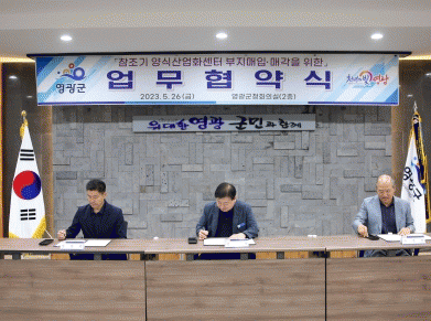 이번 협약식에는 사업 대상 부지 소유자인 강영원, 강창원씨가 참석하여영광군이 역점사업으로 추진중인 참조기 양식 산업화 센터 건립에 적극 협조하고 사업 편입 토지 매각·매입에 상호 협력한다는 내용이 담겨있다.