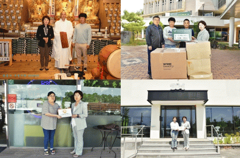 복지재단에 따르면, 관음사에서 백미 50포(120만 원 상당), 노서현 님 의류 6박스 (1,000만 원 상당), 금강유통 과자 126박스(250만 원 상당), 호남유통 식재료(800만 원 상당)의 기부물품을 후원했다.