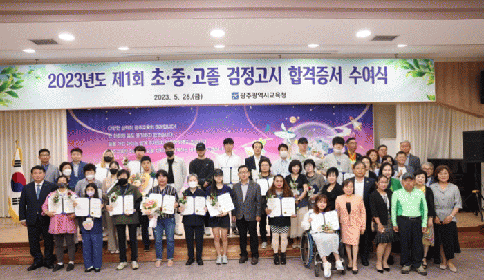 29일 시교육청에 따르면 이날 수여식에는 검정고시 합격생 25명이 참석했다. 합격생 가족들, 이정선 교육감을 비롯한 시교육청 관계자, 광주?전남 검정고시 동문회 한평만 회장 등이 함께 자리했다. 수여식은 국민의례, 합격증서 수여, 교육감 격려사, 검정고시 동문회장 축사, 축하공연 순으로 진행됐다.