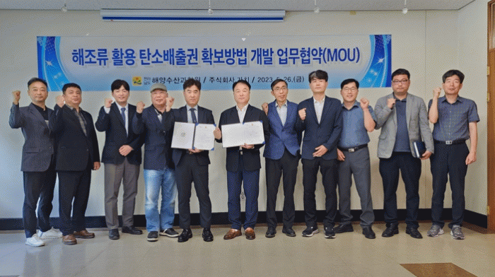 협약식에는 김충남 전남도해양수산과학원장, 송우일 ㈜가치 공동대표 등이참석해 해조류 활용 탄소배출권 확보 공동연구에 적극 협력키로 했다.