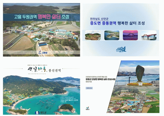 유형별로 행복한 삶터 조성사업은 기초생활 기반 시설을 확충해 어촌지역 정주 여건 개선을 위한 것이다. 선정 사업은 ▲고흥 두원면권 40억 원 ▲신안 증도면 증동권역 93억 원 ▲장흥 안양면권 67억 원 ▲완도 생일면권역 39억 원이다.