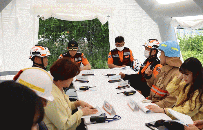 주요 내용으로는 ▲출동대 화재진압 및 인명구조 훈련 ▲다수사상자 발생에 따른 대응 훈련 ▲통제단 역할 분담 및 임무수행 ▲유관기관 협력,공조 체계 구축 ▲재난상황 언론브리핑 ▲현장평가회의 및 훈련 강평 등이다.
