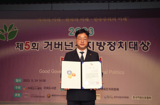 사단법인 거버넌스센터에서 주최하고 대통령 직속 국가균형발전위원회, 전국 시·도지사협의회, 전국시장·군수협의회, 지방자치학회 등에서 후원하며 지방정치 분야 의정대상에서 권위있는 상으로 평가받는 ‘거버넌스 지방정치대상’은 거버넌스 구현 · 성취도 · 혁신 파급성 · 창의성 · 참신성 · 자기계발 등을 평가해 수상자를 결정한다.
