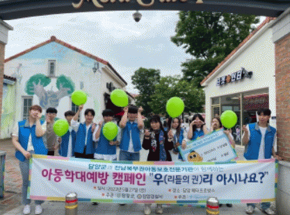 군 관계자는 “앞으로도 유관기관과 연대해 아동학대 예방 캠페인을 추진할 것”이라며, “아동이 행복한 담양을 구현하는 데 최선을 다하겠다”고 전했다.
