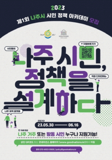 전라남도 나주시는 오는 6월 23일부터 7월 1일까지 매주 금·토요일 총 4회차로 구성된 ‘제1회 시민 정책 아카데미’를 개최할 예정이라고 30일 밝혔다.