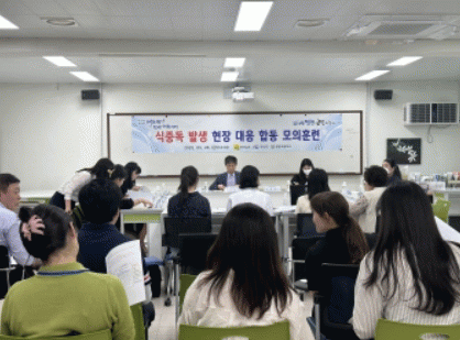 실제 학교 급식 후 식중독 의심 환자가 발생했다는 가정하에 식중독 의심 환자 인지와 신속한 보고, 관계기관 출동 및 대응협의체 운영, 검체 수거 및 역학조사, 식중독 사후 조치 및 회의 등을 차례대로 진행했다.
