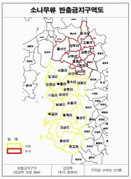 군은 소나무재선충병 확산 예방을 위해 감염나무 반경 2㎞ 이내(무안읍 신학리, 평용리, 매곡리, 고절리, 교촌리, 성남리, 현경면 양학리, 동산리, 청계면 사마리, 청천리)를 소나무류 반출금지 구역으로 추가 지정하고 소나무류 이동을 전면 제한하기로 하는 한편, 14일 이내 발생지 주변 산림에 대하여 무인기(드론) 등을 활용한 정밀 조사로 감염 의심 나무에 대한 예찰을 강화하기로 했다.