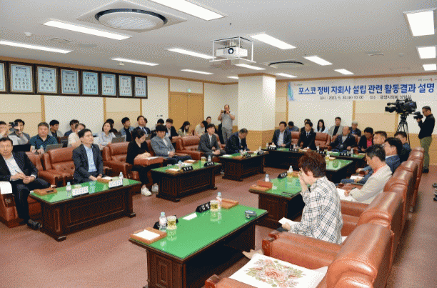 이날 회의는 서영배 의장을 비롯한 시의원들과 포스코 관계자, 지역 상공인단체 등 30여명이 참석했으며, 포스코 관계자들이 정비자회사 설립과 관련한 활동 결과를 설명하고 이후 참석자들이 질의응답하는 순으로 진행됐다.