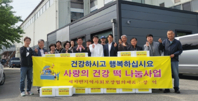 기탁된 떡은 350만원 상당 자사 식품으로 세지면 지역사회보장협의체를 통해 경로당 35곳에 각각 전달됐다.