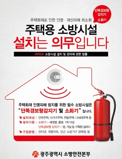 주택용 소방시설은 ‘소방시설 설치 및 관리에 관한 법률’에 따라 주택에 설치하는 소방시설로써 소화기와 단독경보형감지기로 구성돼 있다. 광주소방안전본부는 그동안 8만9716가구에 주택용 소방시설을 보급했다.