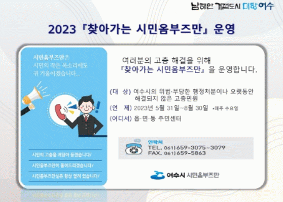 ‘여수시 시민옴부즈만’은 2017년 8월 출범 이후 385건의 민원을 접수해 381건은 완료하고 4건은 추진 중에 있다.