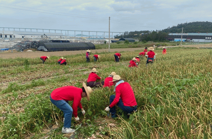 또한 북항동 자생조직연합회에서도 장산면 농가에서 양파 수확을 돕고, 장산면 내 경로당을 방문해 식사를 대접하는 등 뜻깊은 시간을 가졌다. 또한 오늘(1일) 연동 통장협의회가 암태면을 찾아 마늘 수확을 돕는다.