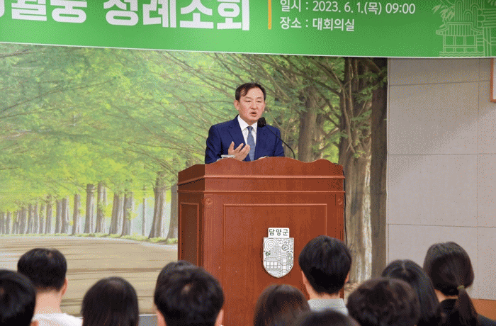 이병노 군수는 이날 정례조회에서 ‘2023 New Bamboo Festival’의 성공적 개최와 현안사업 추진, 예산확보 활동 등 군정업무에 열심히 일해준 공직자에게 감사를 전했다.