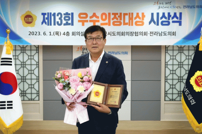 우수의정대상은 대한민국 시.도의회의장협의회에서 지역발전과 주민들의 삶의 질 향상을 위한 의정활동을 평가해 그 공로가 우수한 시.도의원에 대해 시상하는 상이다.