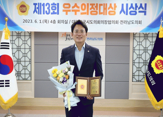 우수의정대상은 대한민국 시도의장협의회가 지역주민의 삶의 질 향상과 지방의회 발전에 이바지하는 등 우수한 의정활동을 펼친 의원에게 수여하는 상이다.