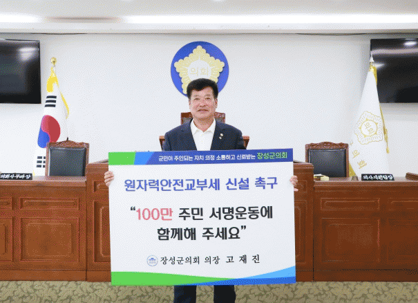 고재진 의장은“장성군은 방사능 방재업무를 충실히 수행하고 있고, 주민들도 원전으로 인한 두려움과 불이익을 감수하며 살아가고 있어 제대로 된 보상 및 지원을 위한 원자력 교부세 신설은 꼭 필요하다”며 “군민들께서도 적극적인 참여를 부탁드린다”고 동참을 당부했다.