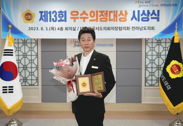 ‘우수의정대상’은 남다른 열정과 헌신으로 지방자치 발전과 지역주민들의 삶의 질 향상에 기여한 공이 큰 의원에게 대한민국시도의회의장협의회가 수여하는 권위 높은 상이다.