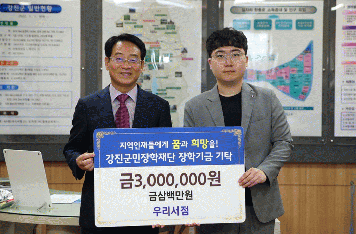 우리서점은 지금까지 총 1,010만 원의 장학기금을 강진군민장학재단에 기탁했다.