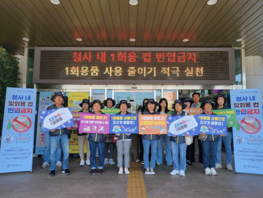 이번 캠페인은 ‘일회용 컵 없는 청사’ 조성을 목표로 다회용 컵 사용 활성화를 위해 ▲점심시간 등 외출 시 텀블러나 다회용 컵 사용·회수 독려 ▲청사 내 종이컵 등 일회용품 사용 최소화 ▲회의 및 민원인 응대 시 종이컵 사용 최소화 등 적극적인 참여를 유도했다.