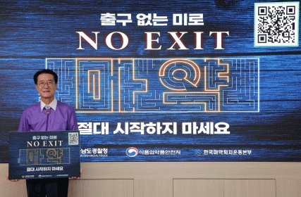 ‘NO EXIT’ 캠페인은 중독성이 강해 빠져나오기 힘든 출구 없는 미로와 같은 마약의 위험성을 의미하는 것으로, 마약 중독의 위험성을 알리고 마약 퇴출을 위한 국민 의지를 확산시키기 위해 경찰청과 한국마약퇴치운동본부가 지난 4월부터 공동으로 추진 중인 릴레이 캠페인이다.