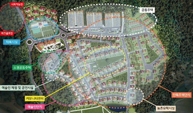 귀농, 귀촌하는 은퇴자를 주 대상으로 500세대의 주거단지와 예술인 특화단지, 농촌유학시설, 커뮤니티시설, 체육시설 등 다양한 기반 시설이 단지 내 조성될 예정이다.