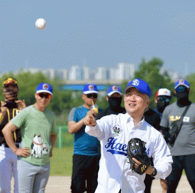 [뉴스맘]김이강 서구청장은 3일 오전 덕흥야구장에서 열린 제9회 서구청장배 생활체육 야구대회 개회식에 참석해 시구했다. 이번 대회에는 40개팀 600여명이 참여했다.