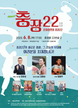 특히 이번 행사에서는 충장22 새 위탁 기관으로 선정된 (사)대동문화재단이 원도심 충장로의 발전을 견인하는 허브 역할을 해온 충장22의 새로운 도약을 위해 다양한 프로그램을 통해 삶의 질을 높이고 지역 사회와 함께 문화를 즐길 수 있는 시민문화마당을 만들어 나가겠다는 결의를 다지는 비전 선포식도 거행할 계획이다.