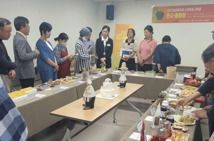 다양한 가공제품이 전시된 가운데 사과도넛, 호두감떡, 감자빵, 콩부각 등 장성 대표 농산물을 이용한 출품작들이 업체 관계자들의 관심을 독차지했다. 교육과정에서 습득한 농산물 대량저장기술이 적용된 제품이다.